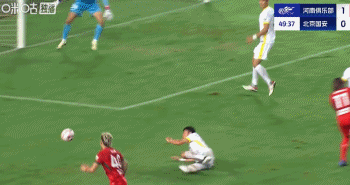 第40分钟,钟义浩补射发生折射破门,河南1-0领先国安!
